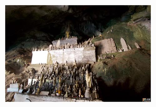 ถ้ำติ่งประกอบไปด้วย ๒ ถ้ำ แยกขวาไปถ้ำติ่งลุ่ม (ล่าง) แยกซ้ายไปถ้ำติ่งเทิง (บน) ถ้ำติ่งลุ่ม หรือถ้ำติ่งล่างนั้น สูง ๖๐ เมตรจากพื้นน้ำมีลักษณะเป็นโพรงถ้ำตื้นๆ มีหินงอกหินย้อยเล็กน้อย เป็นถ้ำที่มีพระพุทธรูปจำนวนมากหลายขนาด ส่วนใหญ่จะเป็นพระยืน มีทั้งปางประทานพร และปางห้ามญาติ ความสำคัญของถ้ำติ่งในสมัยโบราณเป็นที่สักการะบ่วงสรวงดวงวิญญาณ ผีฟ้า ผีแถน เทวดาผาติ่งถ้ำติ่งในวันนี้ยังแสดงถึงยุคแห่งการปฏิวัติความเชื่อของชาวลาวในอดีตที่เคยนับถือผี พระเจ้าโพธิสารราชทรงเลื่อมใสในพุทธศาสนาเป็นผู้นำพุทธศาสนาเข้ามา และทรงใช้ถ้ำติ่งเป็นสถานที่ศักดิ์สิทธิ์ทางพุทธศาสนาและมีการค้นพบพระพุทธรูปที่สร้างขึ้นในคริสศตวรรษที่ ๑๘ -๑๙ กว่า ๒,๕๐๐ องค์ ส่วนใหญ่ทำขึ้นจากไม้